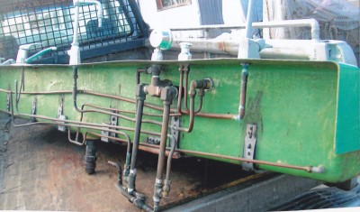 Un évier à usages multiples. Il est fait de façon de gauche à droite. 2 sortes d'eau à température contrôlable de type robinet de laboratoire par lequel on peut adapter des boyaux. Vers la droite, il y a un robinet double évier de cuisine. Aussi, un autre robinet sur le côté droit. Il y a 2 petits injecteurs pour nettoyer le fond par le bouton à gauche du lecteur de pression. Il mesure 16 x 96 pouces.