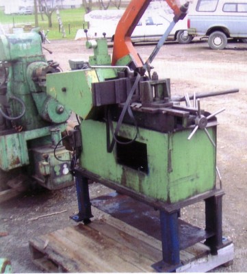 Scie horizontale à fer. Aussi , une scie à ruban à fer non illustrée. En inventaire, aussi plusieurs scies à métaux et bois. Plusieurs va et viens, à ruban, à bois, verticale, horizontale. Aussi, botteuse avec guide de longueurs rotation électrique. contrôle à air, avec convoyeur d'entré et de sortie non illustré.