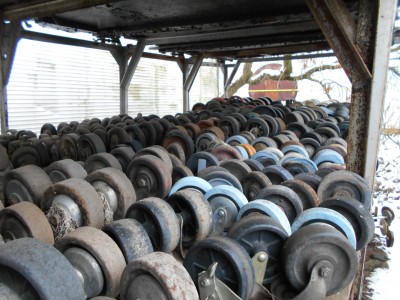 Très gros lot de roues pivotantes et fixes de grandeur diverse.