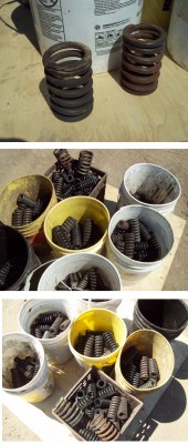 Ressorts de tensions et de compressions. Des petits comme des gros. Des milliers en inventaire de toutes grosseurs. La plupart sont neufs. Certain les utilisent pour faire des tables ou des murs artistique.