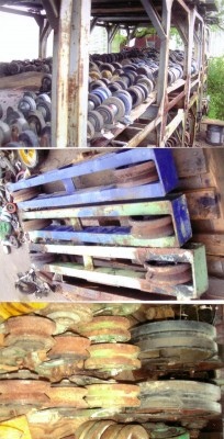 J'ai en inventaire plusieurs centaines de roues pour usage diverses. Fixe, sur rail et pivotantes, de toutes capacités. 2 tablettes de 20 pieds par 5 pieds et aussi beaucoup d'autres. Avec essieux a rainures de guidage, type roues de rayon de chemin de fer. J'ai de très petites et d'autres de plusieurs tonnes. Voir aussi les items similaires pour plus de roues.