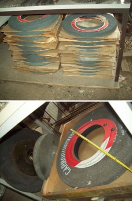 Les meules sont toutes neuves. J'ai aussi des meules à polir. J'ai tout les grades de grains, toutes les sortes et toutes les grandeurs. Environ 1000 en inventaire. Sur cette image, il y a une meule de 20 pouces à 3 pouces et une de 32 pouces par 2½ pouces. Voir aussi item 11751, 12585 et 12586 pour plus de meules. J'ai jusqu’à 26 pouces. J'en ai qui ont 20 pouces avec un trou de 10 pouces pour meuler des carbone de drill et autre métaux durs et aussi à polir.