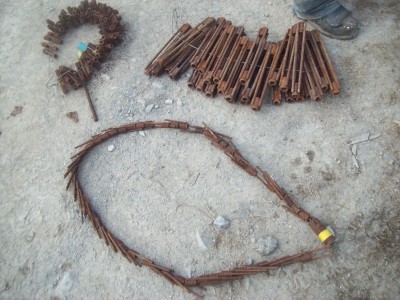 Nous avons en inventaire un petit lot de tiges, des pièces de montage à gros filet de coffrage à béton. J'ai aussi de la rode filetée usagée ¾ en petits bouts.