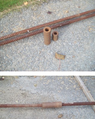 Nous avons des «notes» courtes de 4 pouces et de 8¾ pouces de long pour de la rode à gros filets 1½ pouces. Plusieurs rodes de 10 à 15 pieds de long avec la nut de 8¾, la rode de 1½ peut s'allonger à l'infini, Aussi, d'autre courtes plus petites.