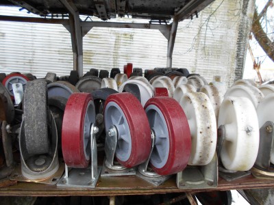 Très gros lot de roues pivotantes et fixes de grandeur diverse.